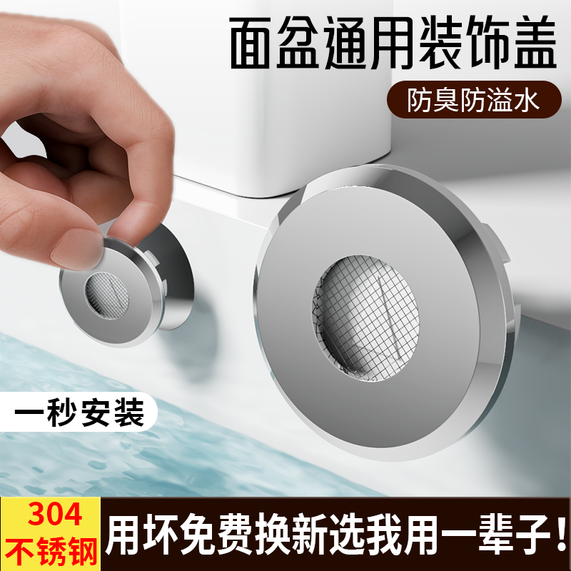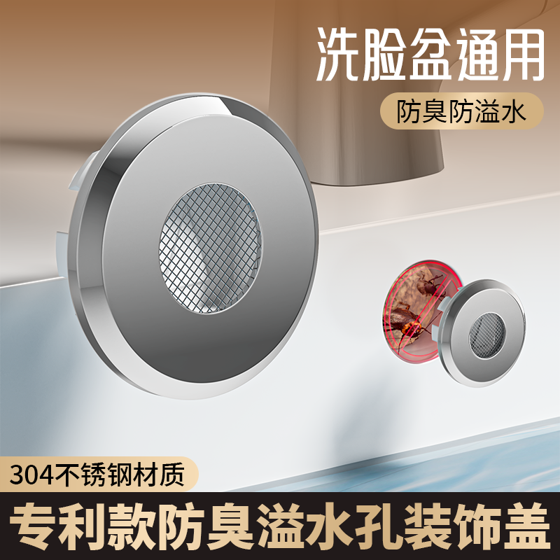 304不锈钢溢水孔口面盆装 饰盖陶瓷洗手脸盆池台密封盖防虫臭塞子