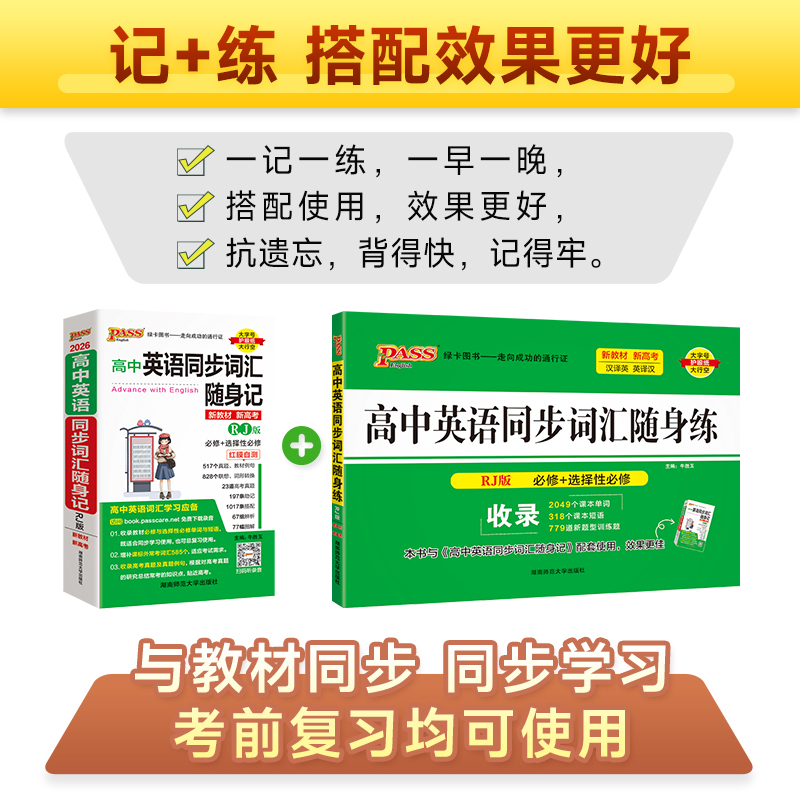 26新版 高一二三高考红膜自测真题图解联想辨析助记录音口袋书 随身备高中英语同步词汇随身记人教版