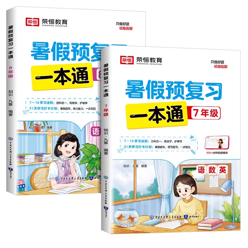 2025新版 荣恒教育暑假预复习一本通7七8八年级语文数学英语物理21天暑期打卡多科规划复习新课初一初二暑假巩固预习作业练习题教辅