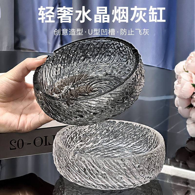 创意轻奢烟灰缸家用欧式 客厅办公室圆形烟碟 烟缸水晶玻璃大号时尚
