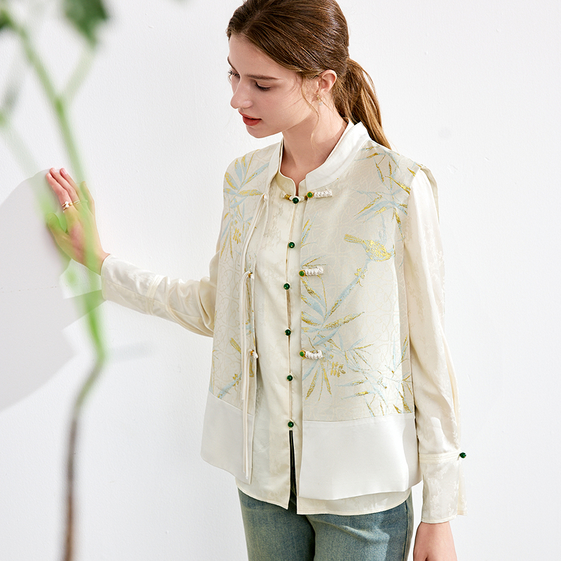 新款 女2025年秋季 改良盘扣禅意衬衣 国风立领衬衫 betu百图新中式