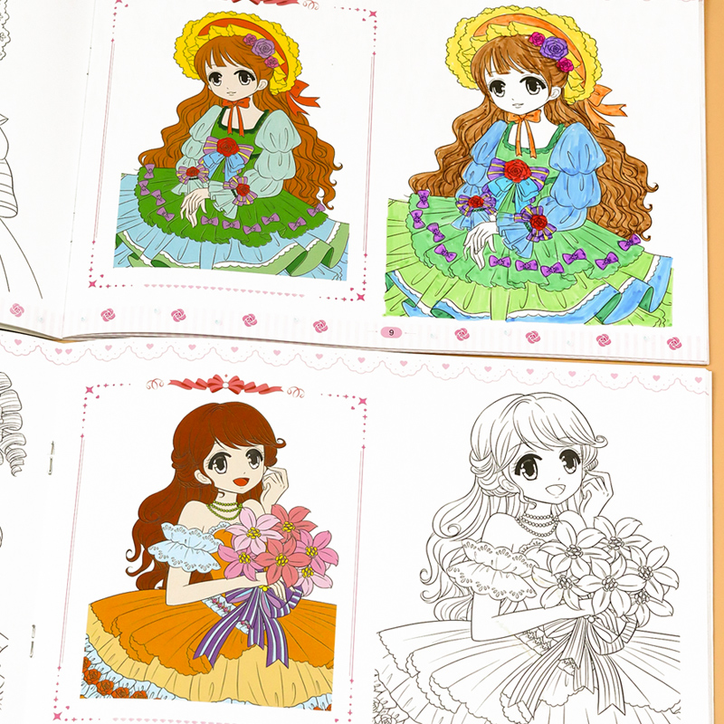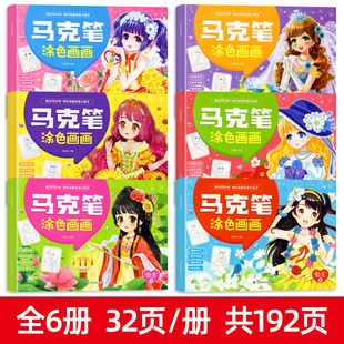 公主马克笔涂色书儿童画画本填色涂鸦本女孩幼儿园绘画册图画套装