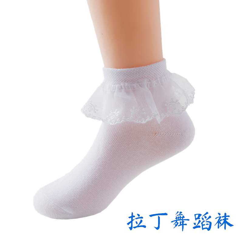 拉丁舞袜儿童舞蹈短袜比赛专用袜子蕾丝公主袜女童表演白色花边袜