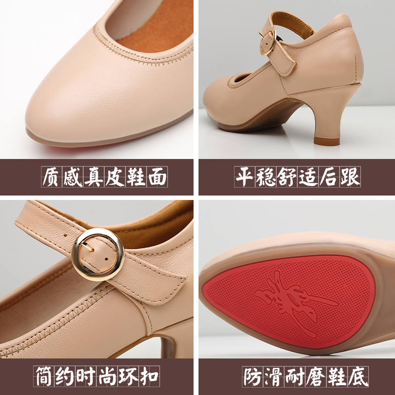 女广场舞鞋 软底跳舞女鞋 红色拉丁舞鞋 摩登舞蹈鞋 2025新款 真皮舞鞋