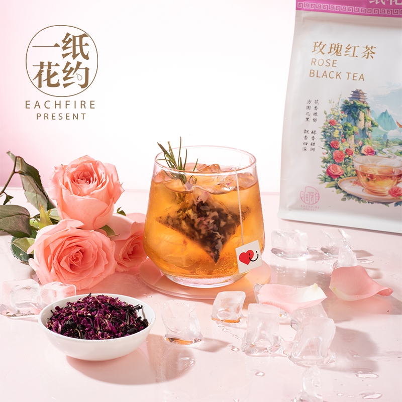 玫瑰红茶干玫瑰花花茶玫瑰组合花茶红茶包泡水喝花草茶