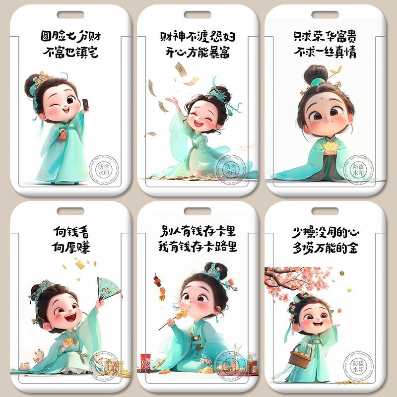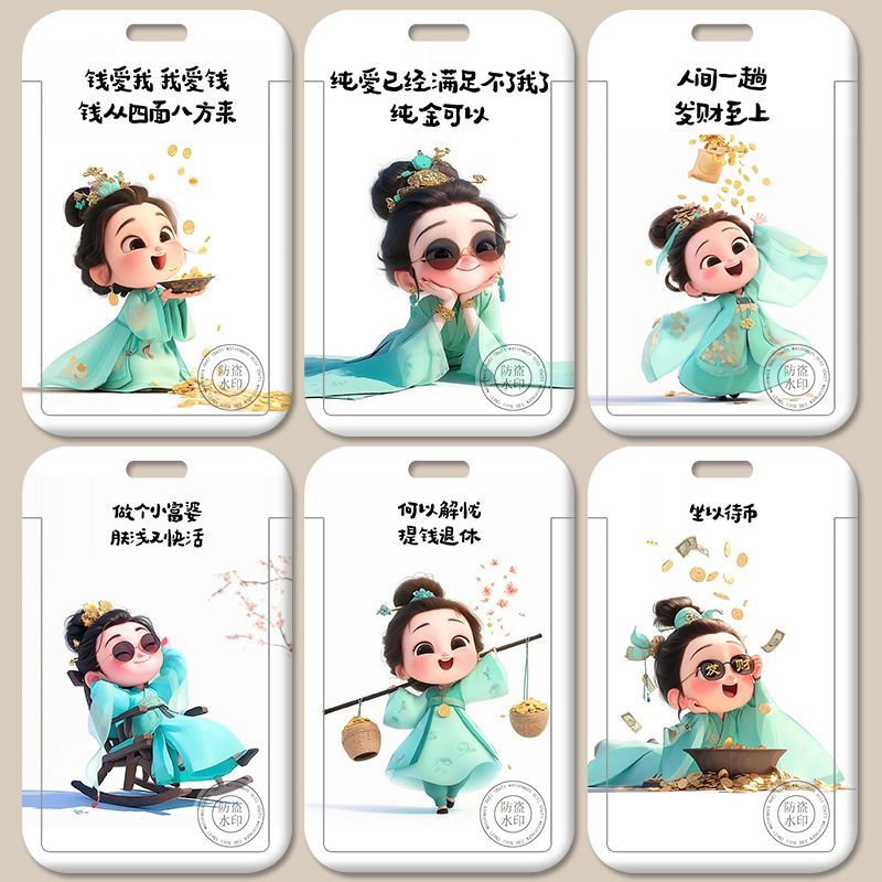 发财少女文字卡套饭卡工作身份证件厂牌门禁公交校园学生水保护套
