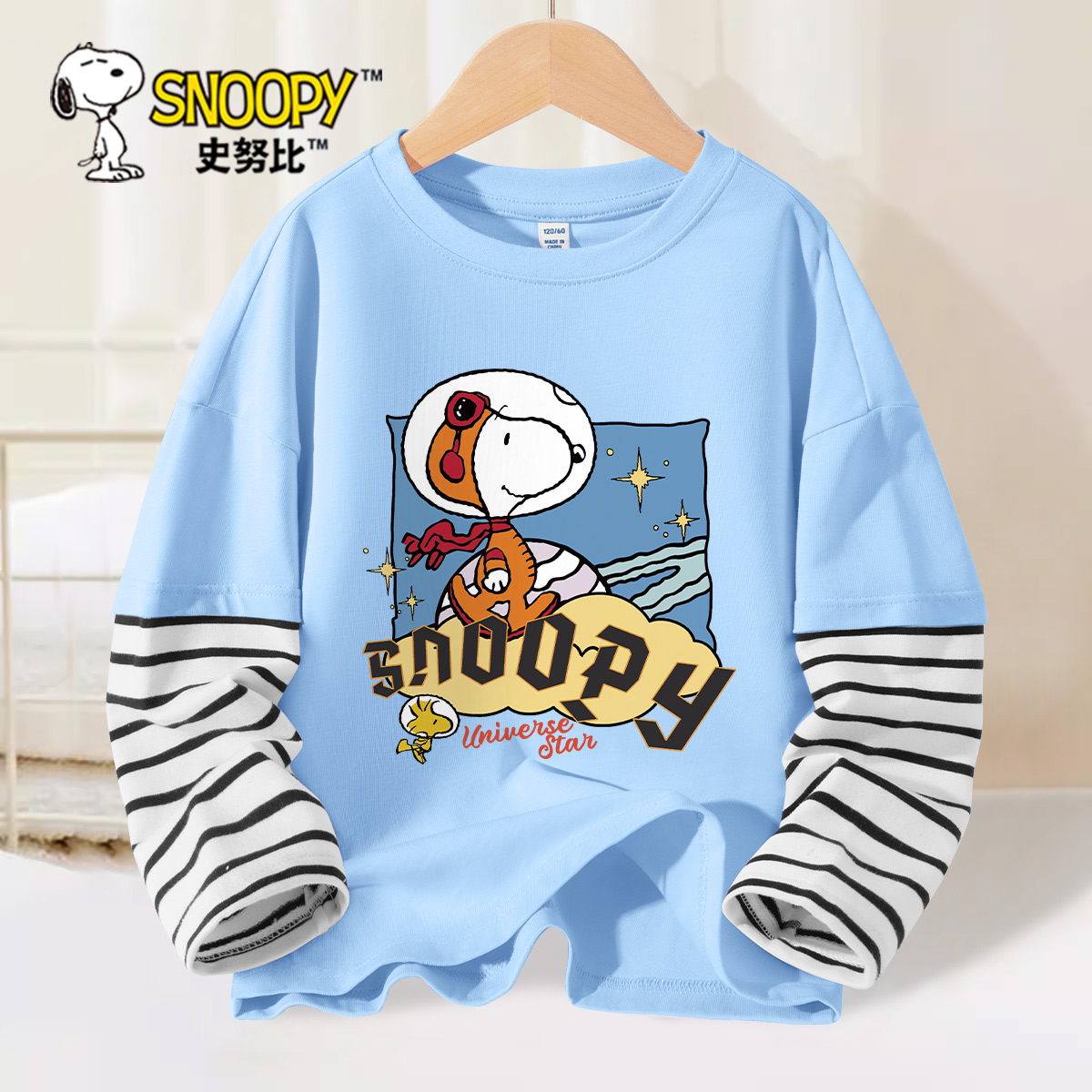 薄款 男大童春秋假两件上衣儿童打底衫 t恤2025新款 史努比男童长袖