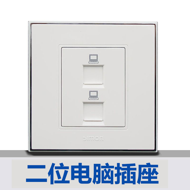 西蒙开关插座56C雅白色电视电脑插座86型家用暗装 二位电脑墙壁
