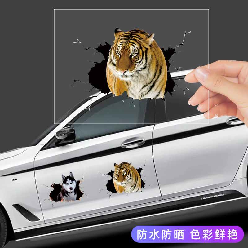 创意个性 3D立体小猫汽车贴纸可爱搞怪猫咪遮挡车身车尾划痕刮痕