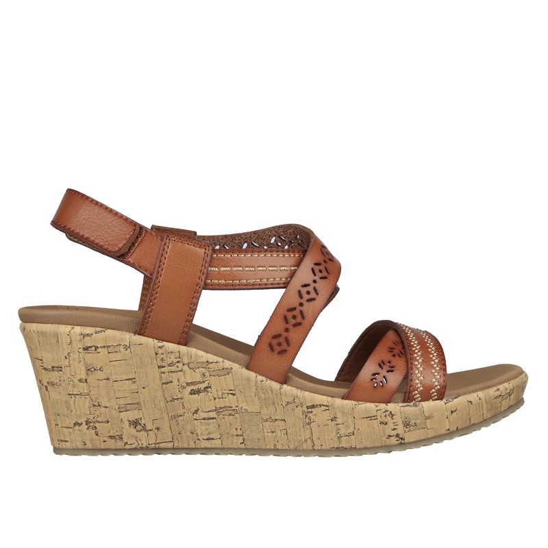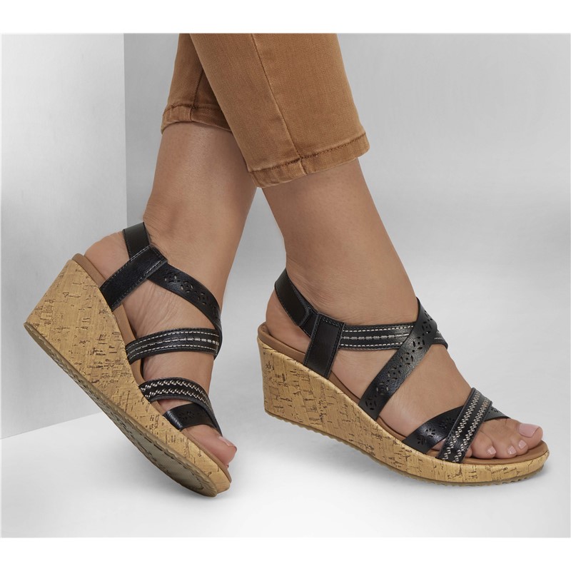 斯凯奇女坡跟凉鞋 正品 缓震交叉带时尚 气质夏季 潮流新款 Skechers