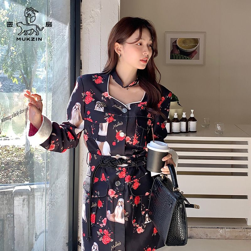 收腰 复古气质修身 密扇狸尨梦华录系列早春新款 花色连衣裙女新中式