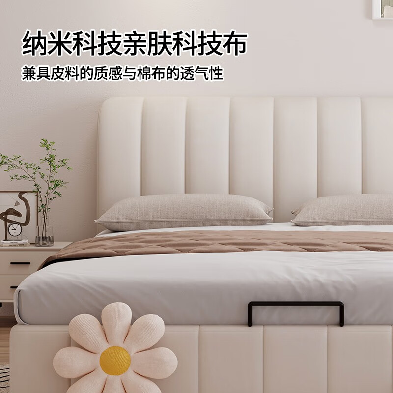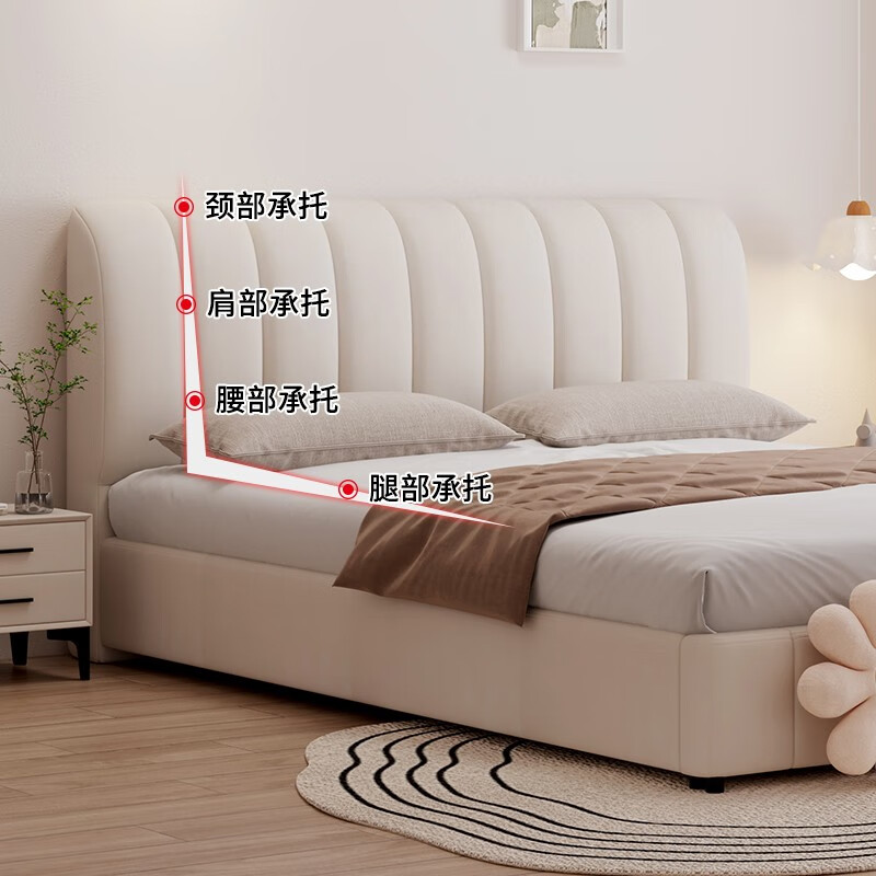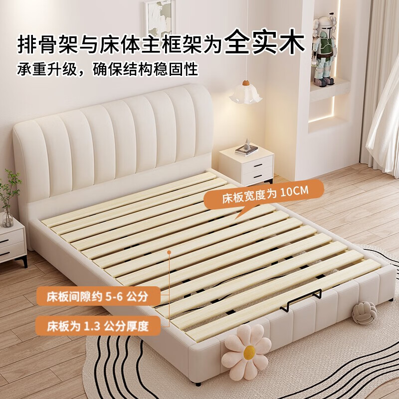 北欧科技布艺床现代简约1.5实木双人床主卧1.8米奶油风软包床床架
