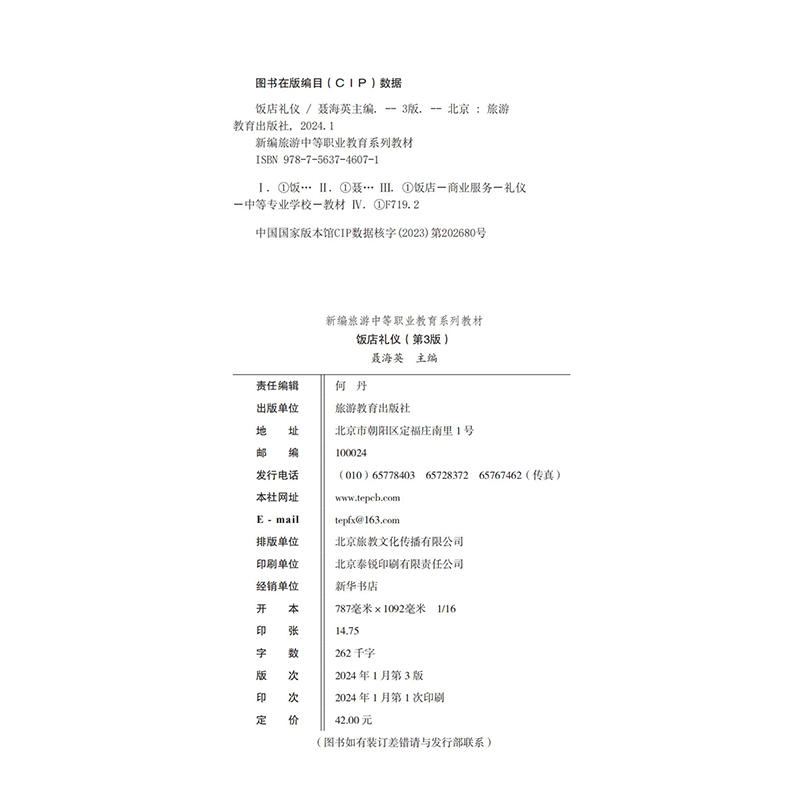 新编旅游中等职业教育系列教材 9787563746071聂海英主编24年1月版 饭店礼仪 第3版