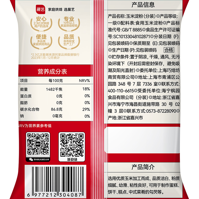展艺玉米淀粉500g 3生粉面粉勾芡嫩肉麻糍蛋糕饼干裹粉烘焙原料