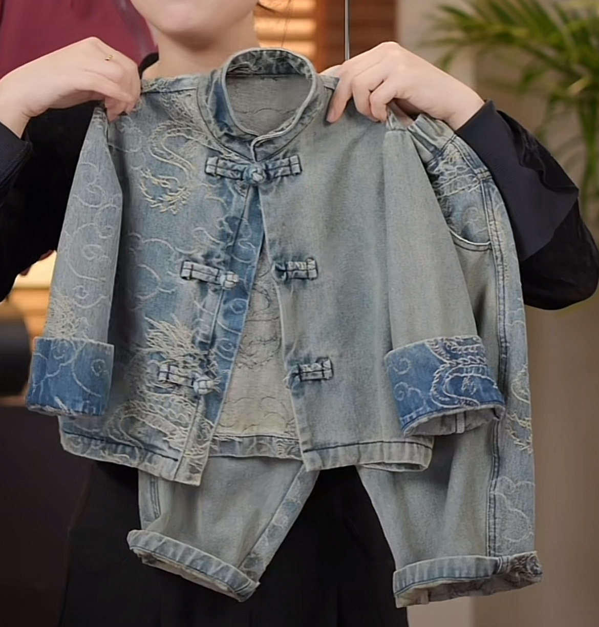 男童春装 2024新款 套装 牛仔龙纹唐装 国风两件套 2024儿童新中式 童装