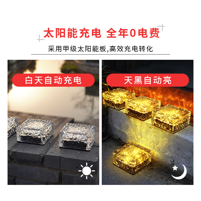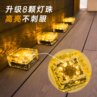 太阳能冰砖灯庭院景观户外防水家用布置花园草坪台阶露台阳台装 饰
