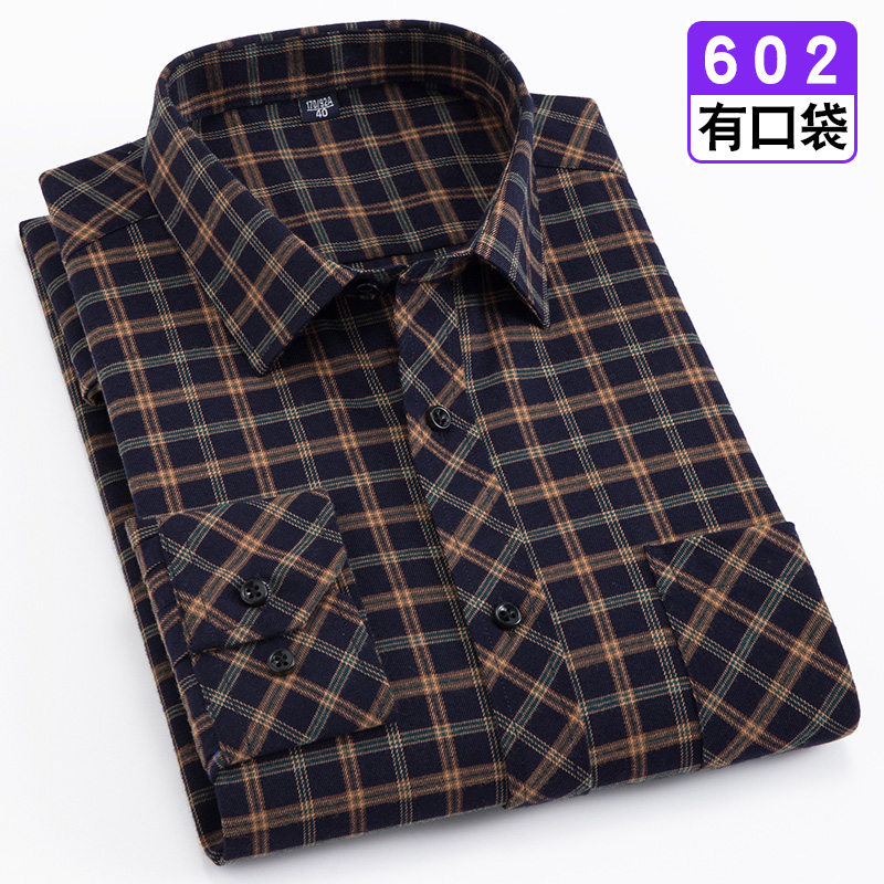 休闲爸爸春秋款 2025新款 衬衫 纯棉小格子长袖 内搭打底全棉衬衣 男士