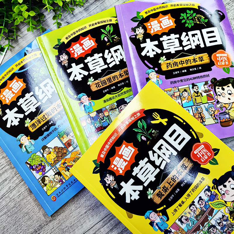 花园里 本草 餐桌上 漫画本草纲目正版 漂洋过海 漫画趣解东方药学巨著 药房中 儿童中医药科普启蒙书籍 全4册