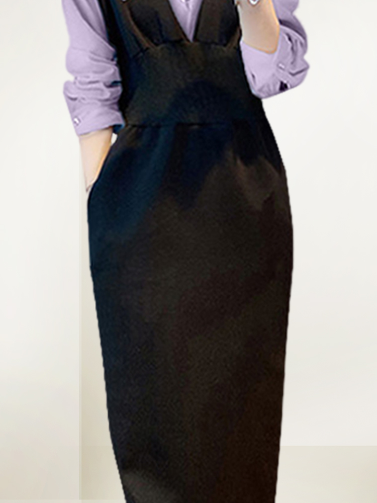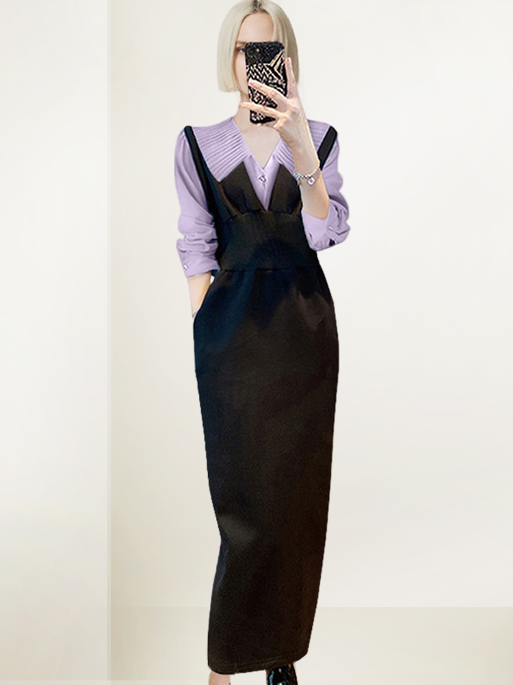 娃娃领衬衫 裙女2025年秋冬新款 背心连衣裙两件套 气质名媛套装 法式