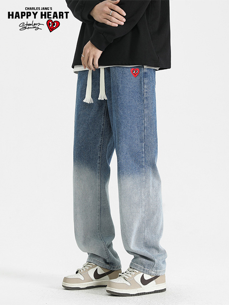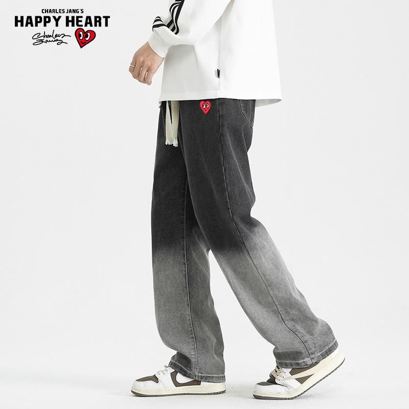 宽松直筒耐磨阔腿水洗长裤 男2025年春秋季 渐变牛仔裤 查尔斯桃心