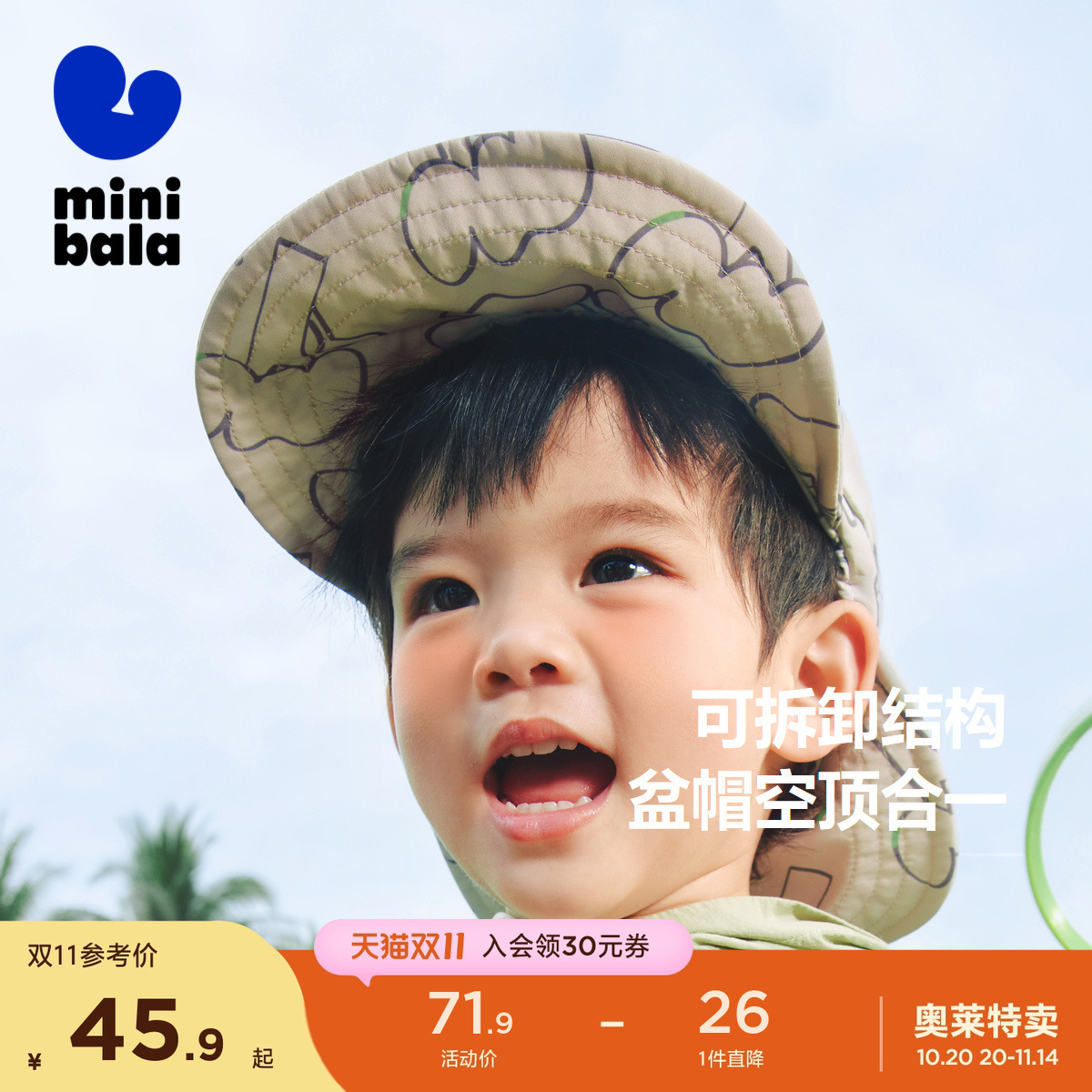 迷你巴拉巴拉男女童空顶防晒帽子夏季 双帽檐可拆卸儿童遮阳帽
