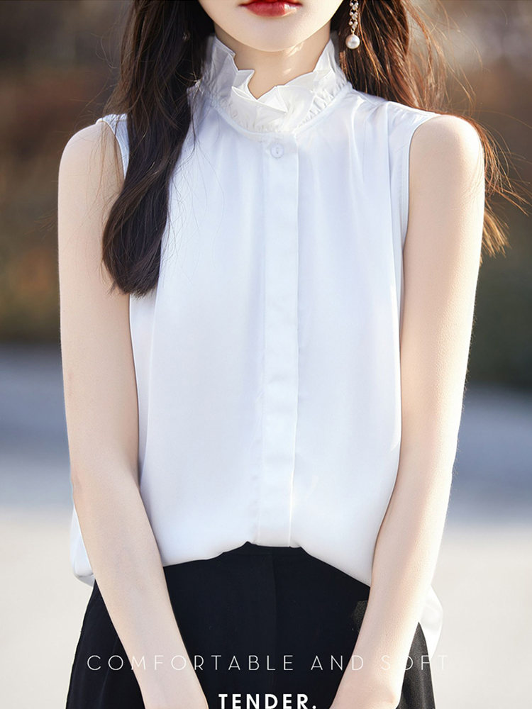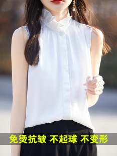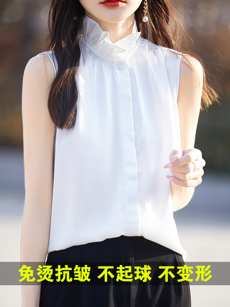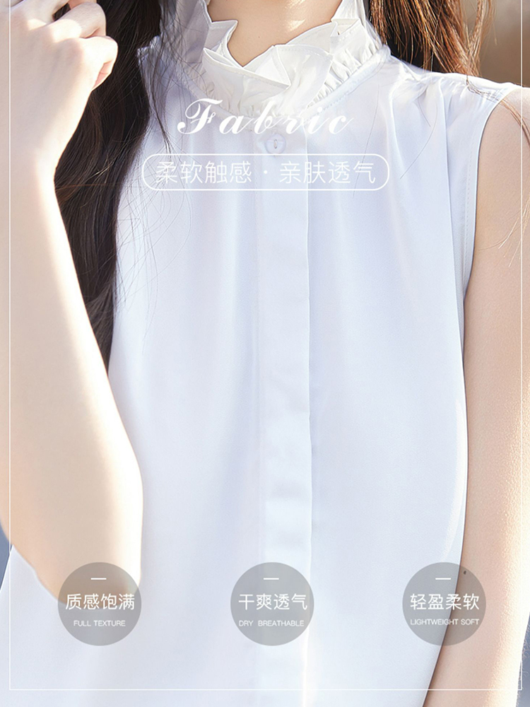 花边领内搭打底叠穿百搭上衣 背心女夏宽松大码 木耳边立领无袖 衬衫