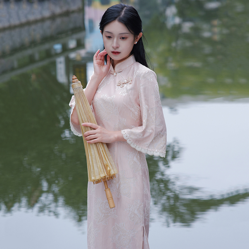 如意风奥黛新中式 改良旗袍女收腰显瘦日常中国风高端连衣裙23R159