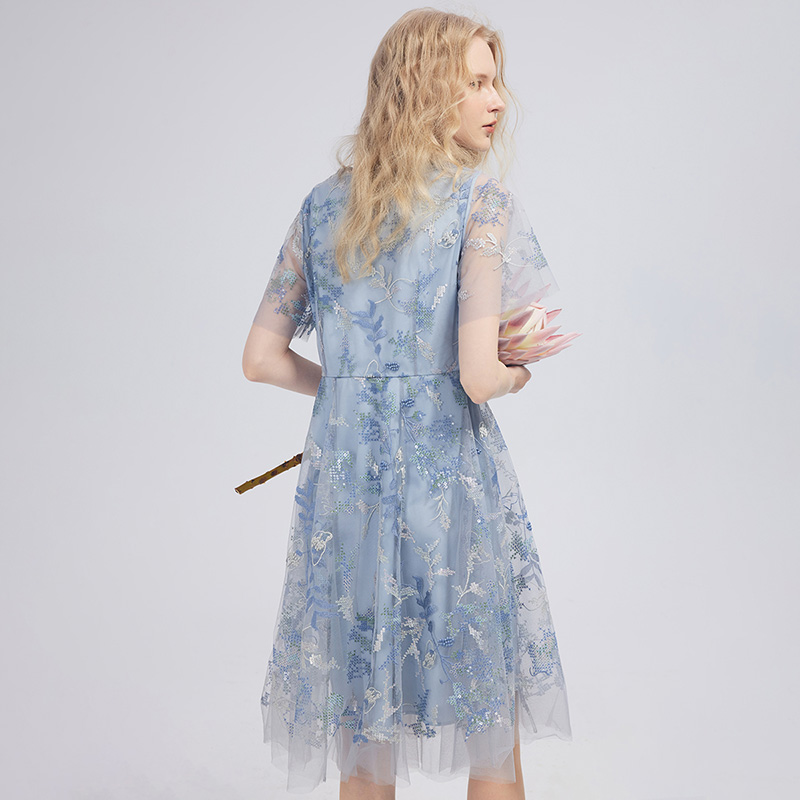 莲灿2024春夏新商场同款 连衣裙 波西米亚风V领水溶花边蕾丝短袖