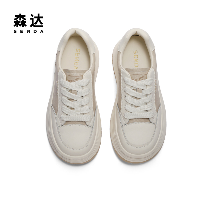 百搭增高休闲板鞋 商场同款 女SWS01AM4 春季 森达厚底小白鞋