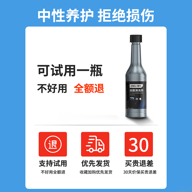 得力去油膜清洁剂汽车前档玻璃清洗剂雨刮器重度强力去除油膜污水