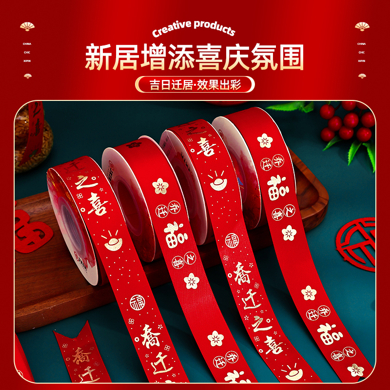 乔迁之喜新居装 用品大全 饰布置烫金红绸丝带新房乔迁搬家入宅仪式