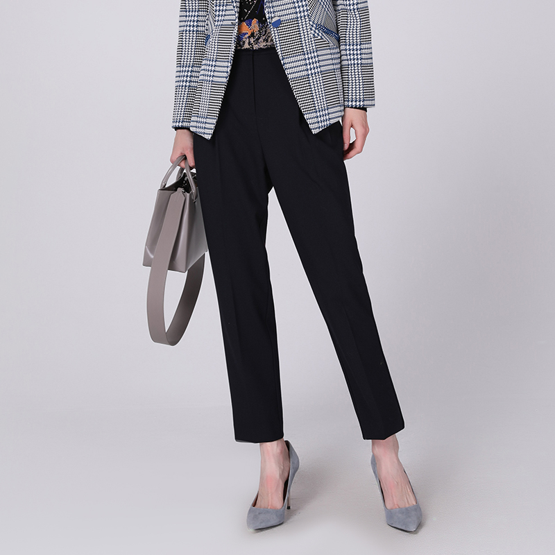 马天奴女装 通勤时尚 秋冬深宝石蓝色直筒西装 子长裤 气质 裤 专柜正品