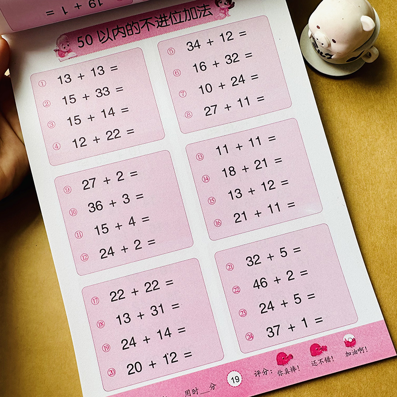 50以内加减法天天练 幼升小一年级数学暑假作业练习题 口算心算速算数学练习册五十以内进位退位连加减法练习本幼小衔接数学横竖式