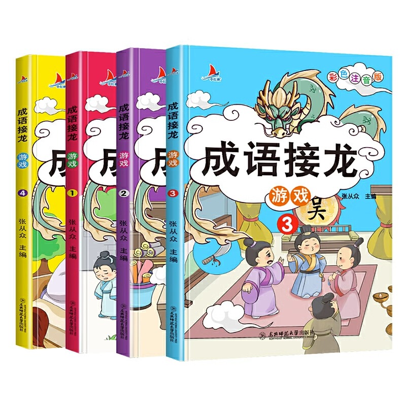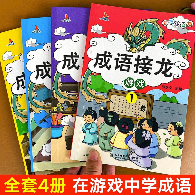 成语接龙游戏书小学生彩图注音版 字词典二年级三年级成语积累训练大全 全套4册成语故事书籍绘本儿童一年级阅读课外书必读幼儿正版