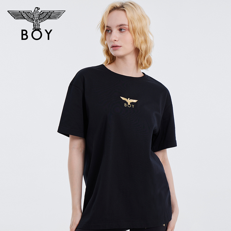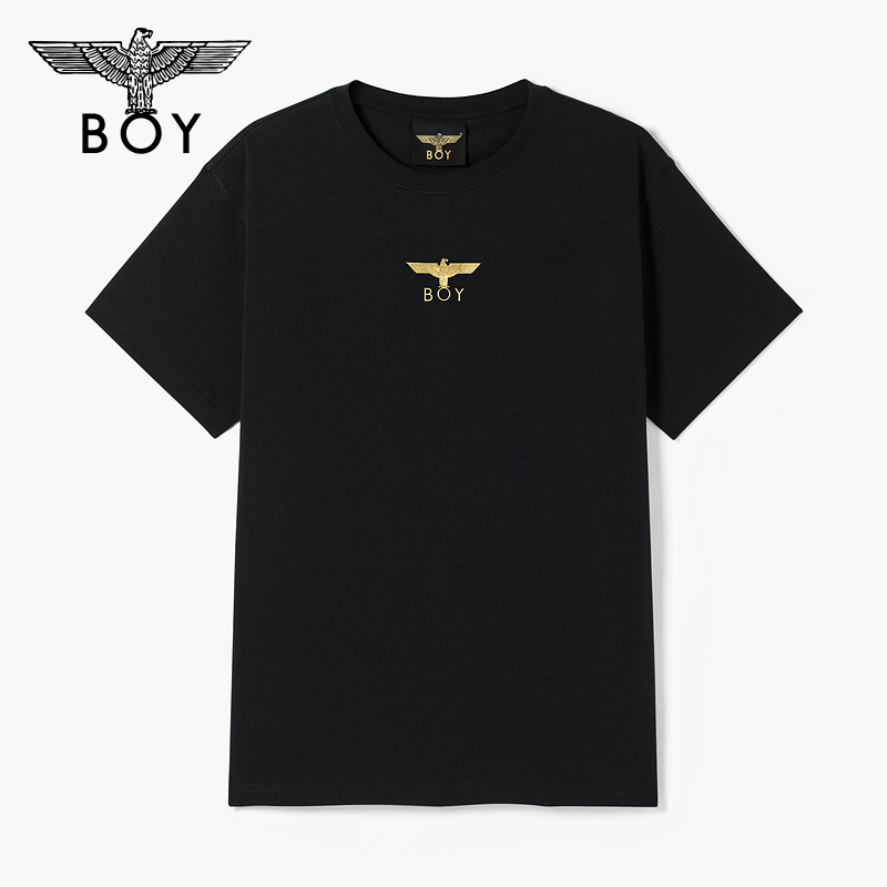 春夏春夏情侣款 BOYLONDON潮牌短袖 黑色朋克T恤N01007 金翅兰花