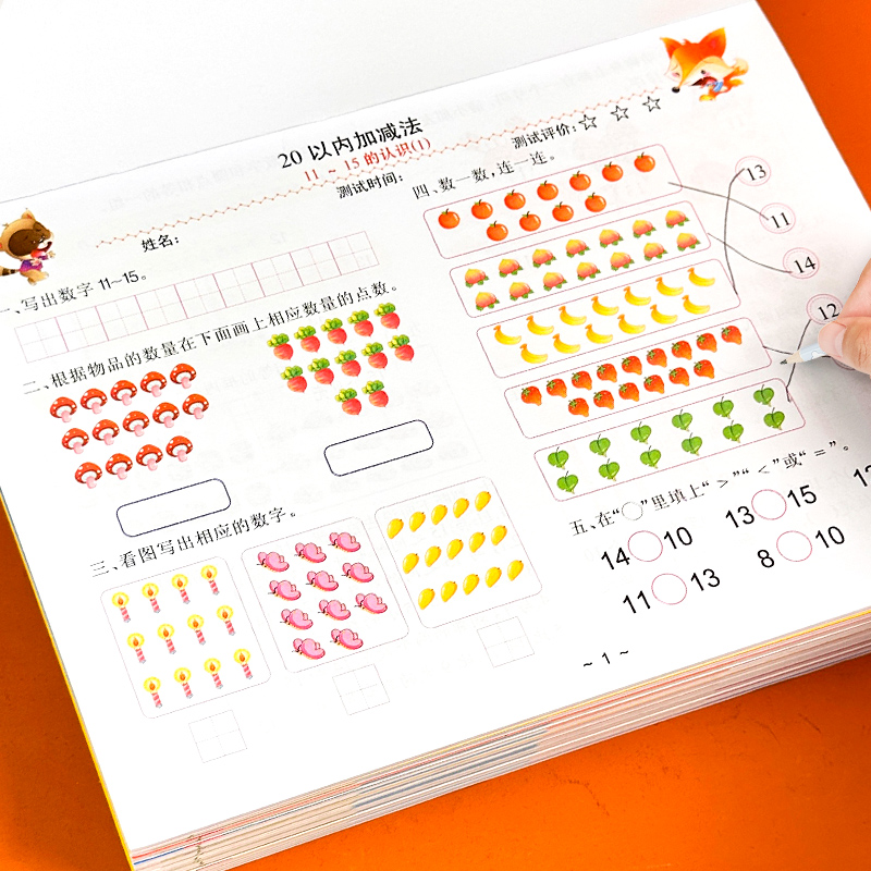 20以内加减法幼儿园大中班数学练习本儿童口算心算题卡凑十法借十法数学算术本算数本儿童作业本练习册