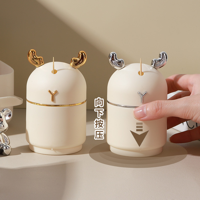 牙签盒自动弹出高档高颜值家用个性 创意奶油风小鹿网红牙签筒桶罐