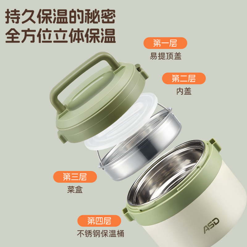 爱仕达保温饭盒上班族学生超长保温桶大容量多层不锈钢便当盒餐盒