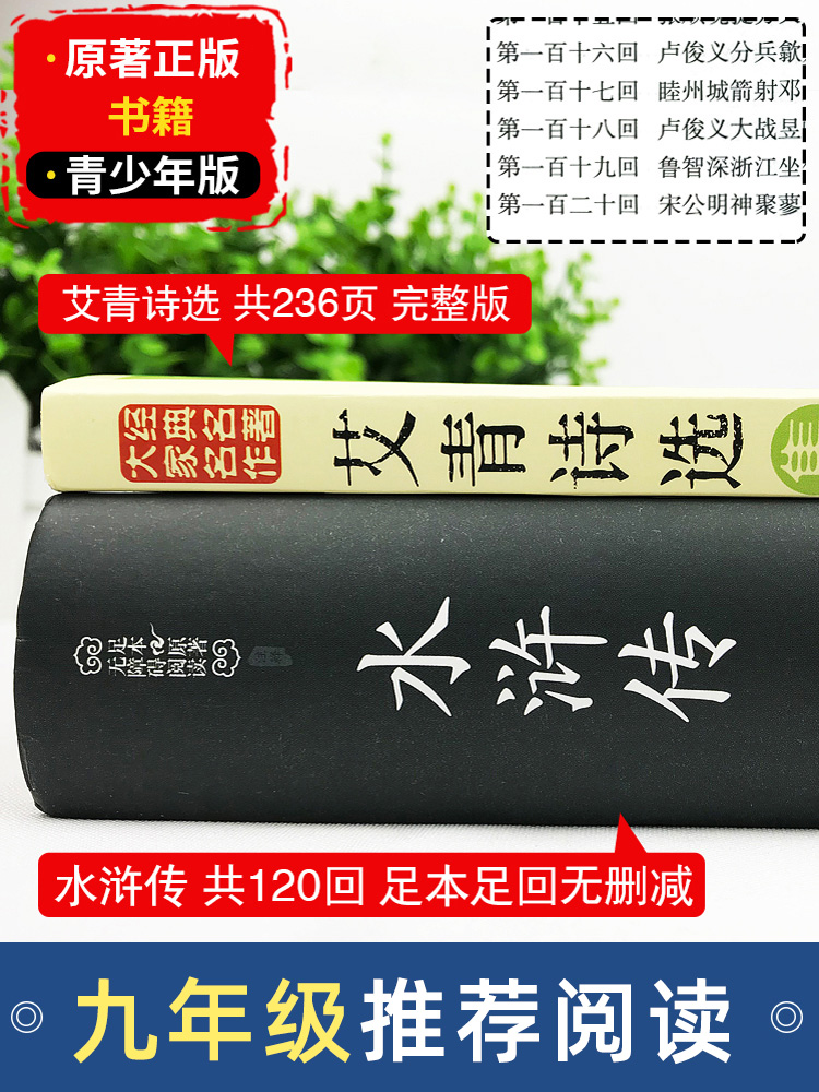 原著正版 艾青诗选和水浒传 完整版 九年级必读名著初中生全套2册 配套书目艾青诗集 9年级上册初三学生课外阅读书籍人教版 赠考点