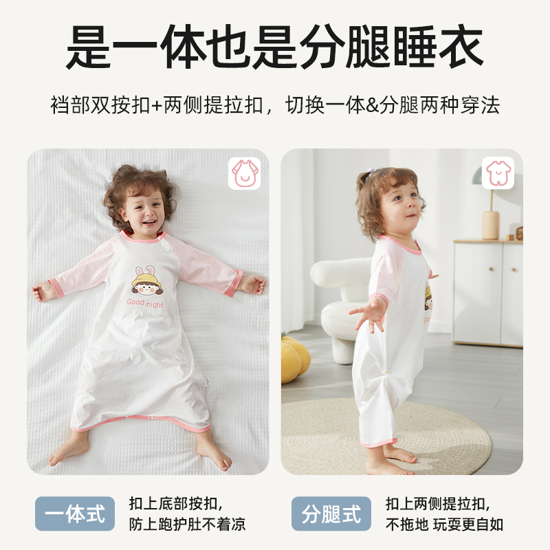 贝肽斯儿童睡衣2025新款 春秋宝宝睡衣防着凉纯棉连体衣睡袋男女童