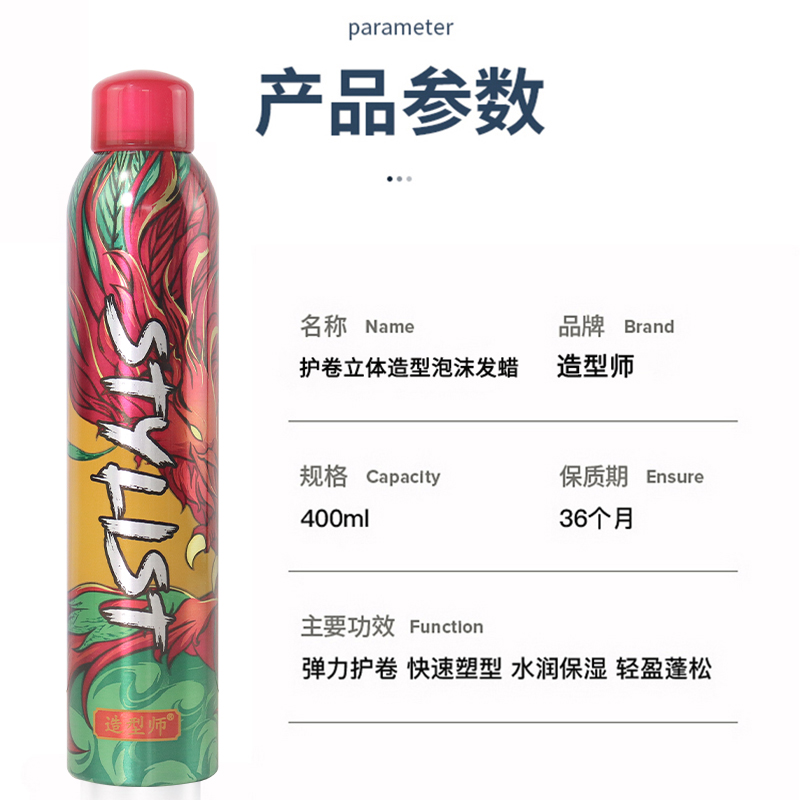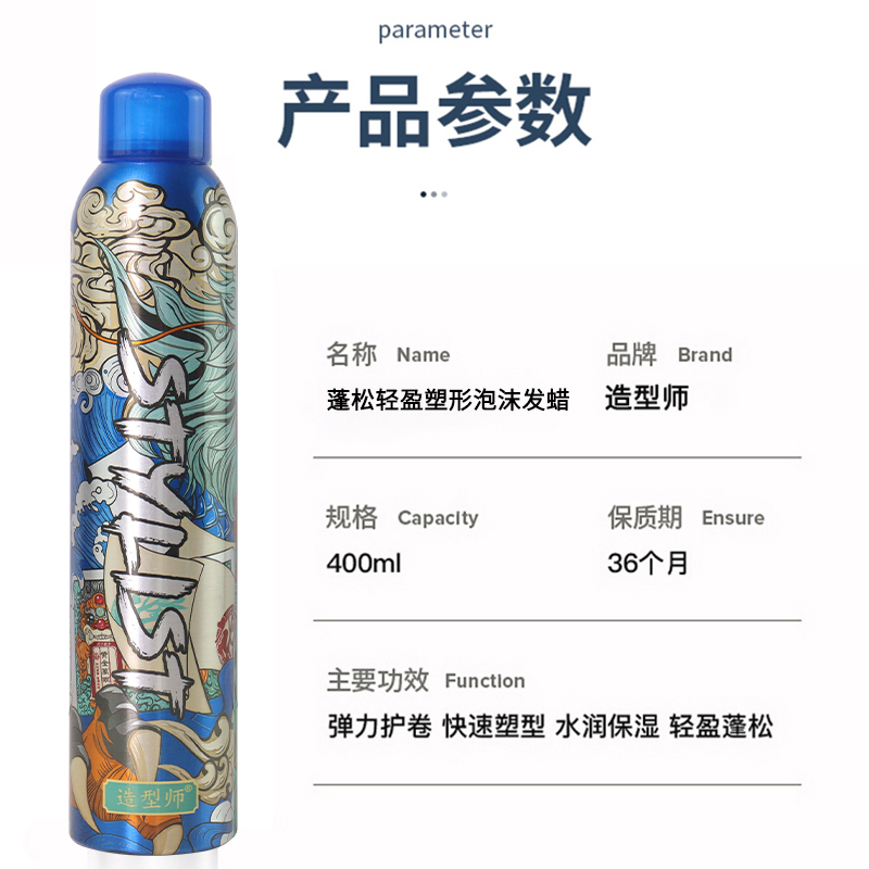 造型师国潮泡沫发蜡卷发保湿 护卷泡泡摩丝造型定型羊毛卷弹力素女