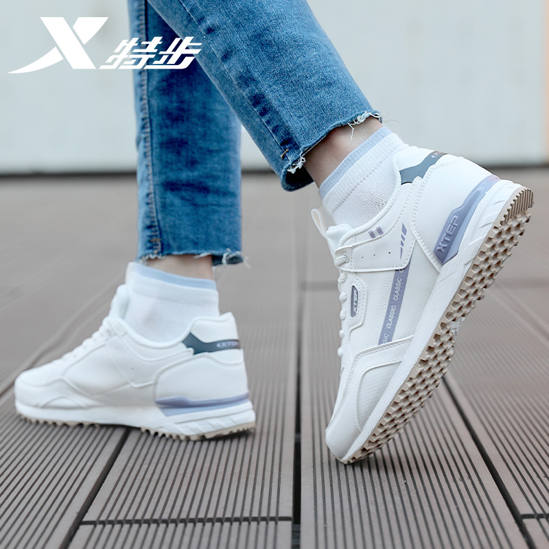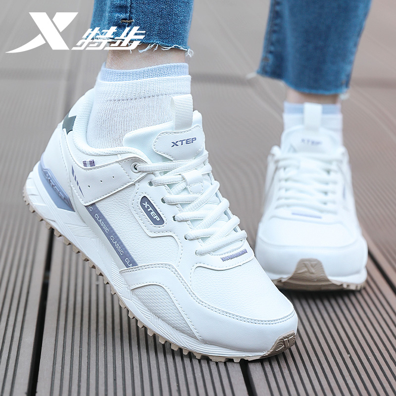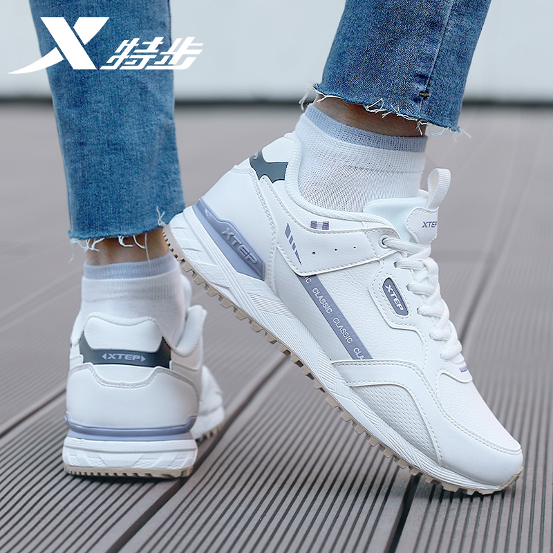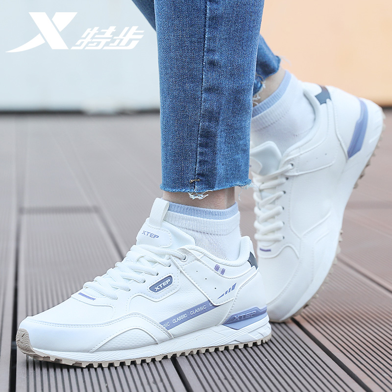 男鞋 子软弹平底鞋 厚底增高情侣休闲鞋 女鞋 革面 运动鞋 特步秋冬板鞋