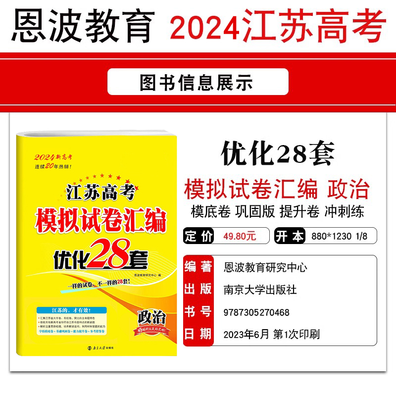 高三选择考提优复习真题含江苏高考题真题解析38套新教材附赠答案小帮手 江苏高考模拟试卷优化28套政治 恩波教育 2024新高考