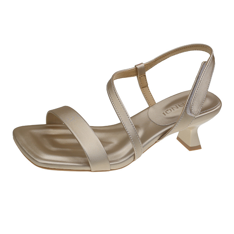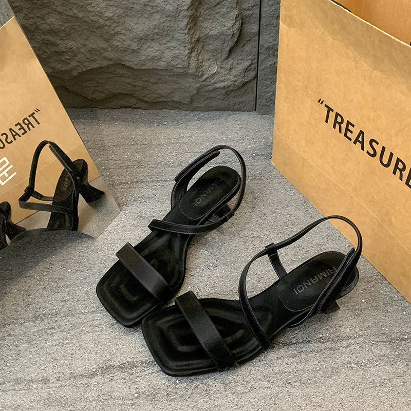 女夏季 罗马鞋 露趾2025新款 气质一字带粗跟时装 法式 中高跟方头凉鞋