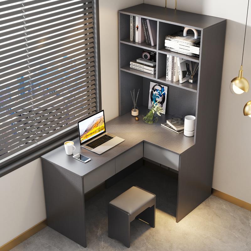 转角电脑桌组合一体意式 极简连体书桌柜实木家用卧室简约现代衣柜