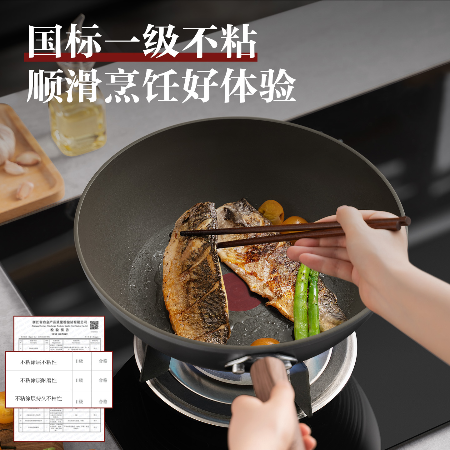 美 不粘锅炒锅家用锅炒菜锅平底锅麦饭石色电磁炉燃气灶专用炊具