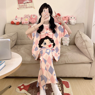 短袖 女生家居服套装 长裤 卡通宽松薄款 睡衣女士纯棉夏天加大码 夏季