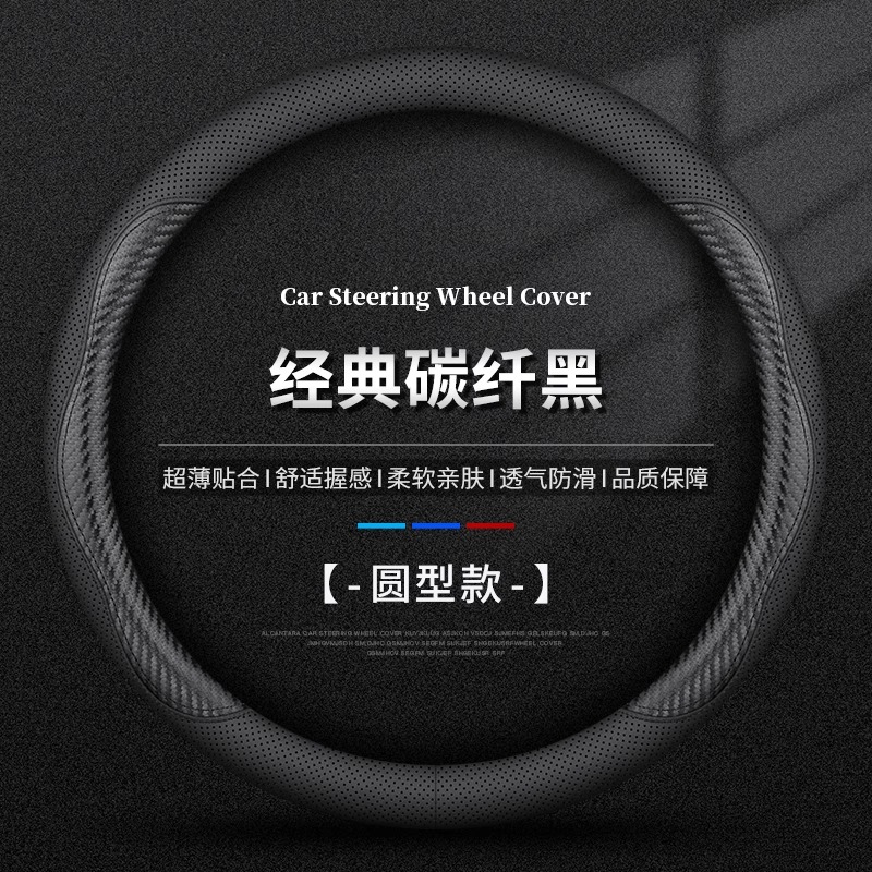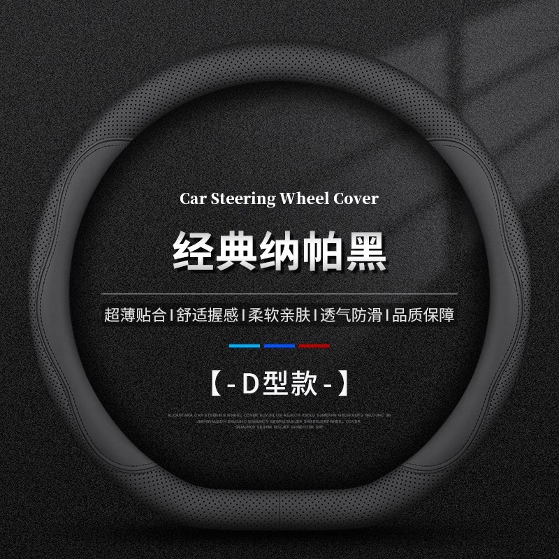 汽车方向盘套防滑吸汗超薄方向盘D型把套透气四季 通用真皮薄款