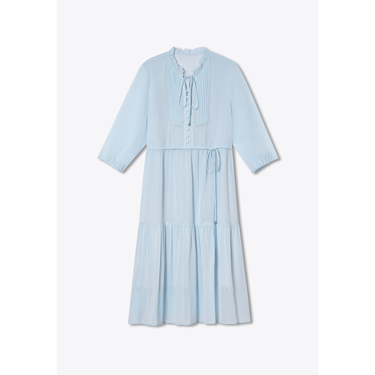 式 KEIKO 显瘦a字衬衫 法式 长裙 费尔岛提花蝴蝶结飘带连衣裙25秋季
