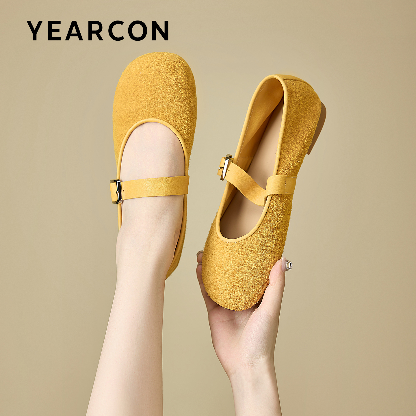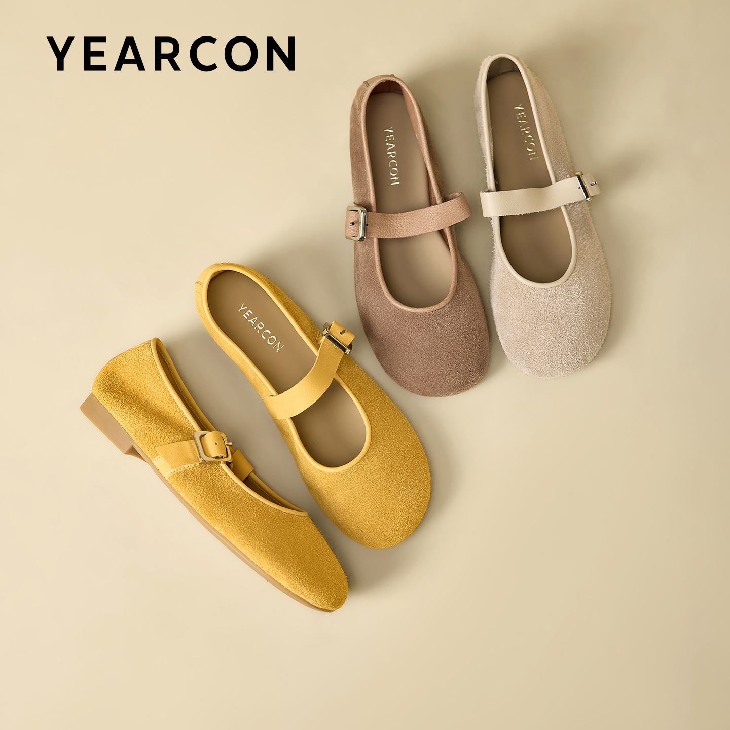 女 羊皮芭蕾玛丽珍单鞋 董洁董璇小酒窝同款 真美诗摩卡慕斯25秋新款